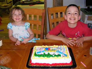 Then, there was Benjamin. He was born on May 22nd. This was the day that we officially celebrated both his and Addy's birthdays. They shared a simple, gender-neutral, store-bought cake (I usually make it, but was in the middle of morning sickness!):